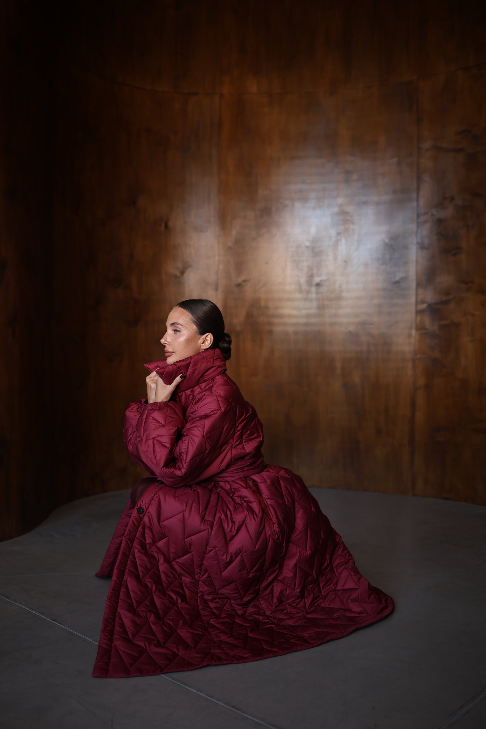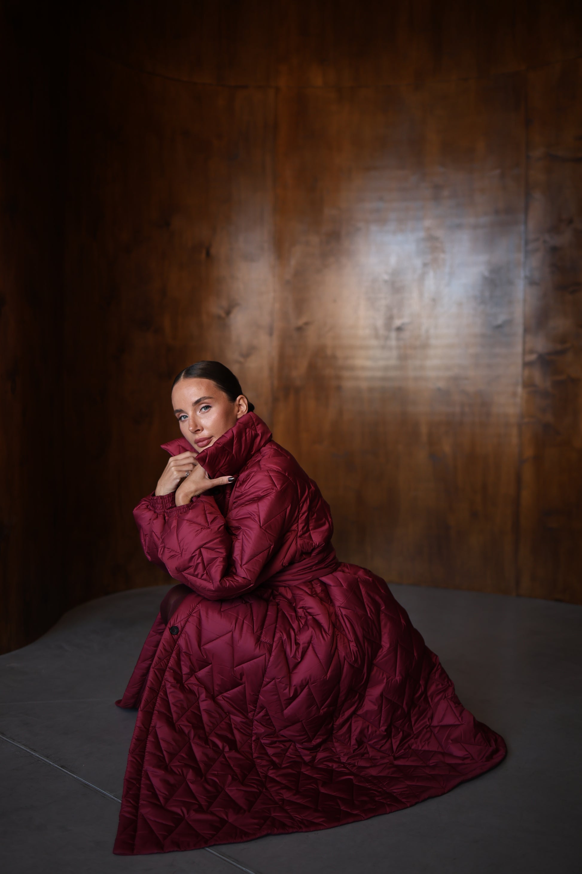 Winter coat. Oversized. The length of the coat is 125 cm. Temperature regime up to -10 degrees. The model is wearing size XS/S, the model's height is 170 cm.