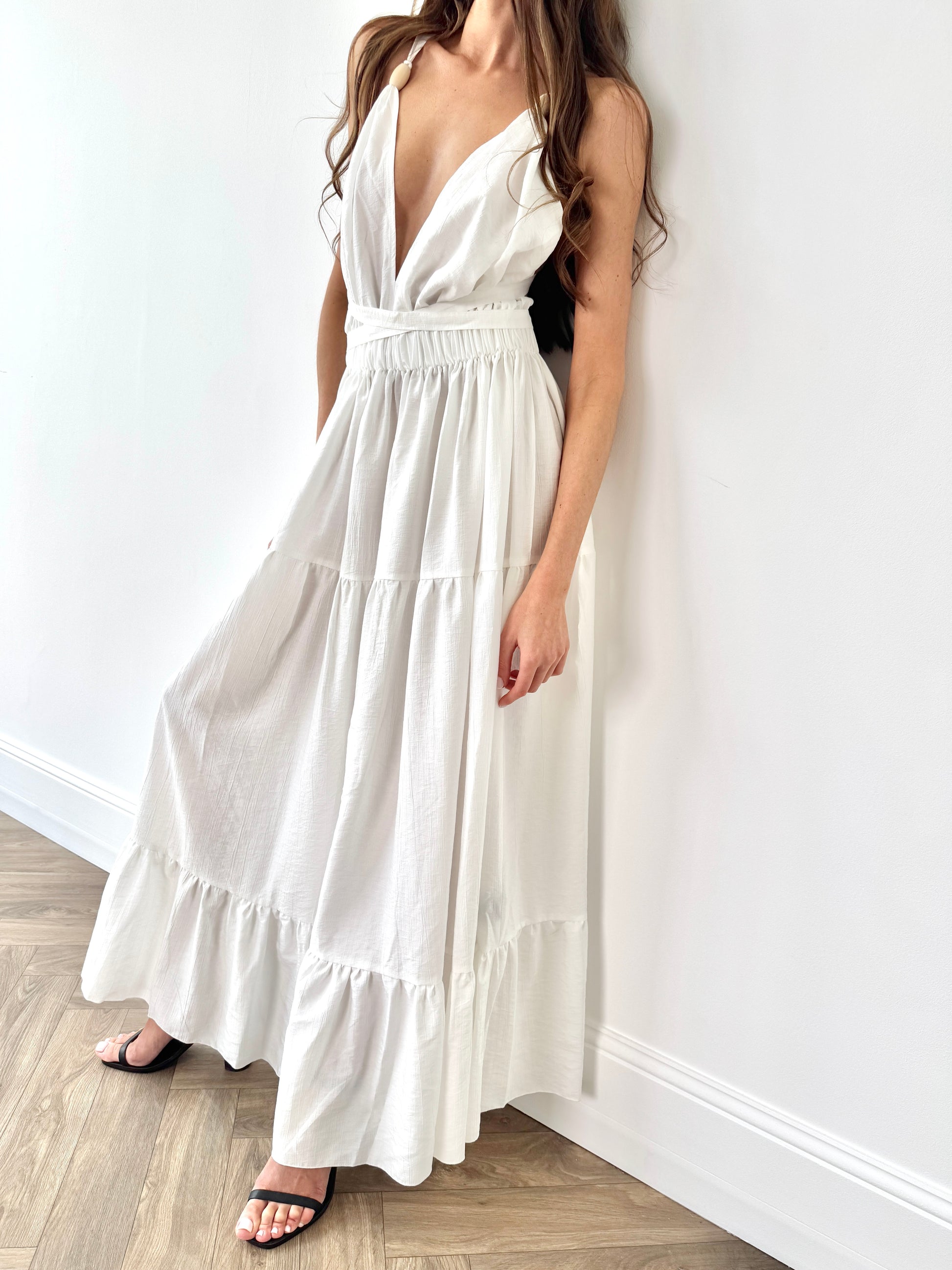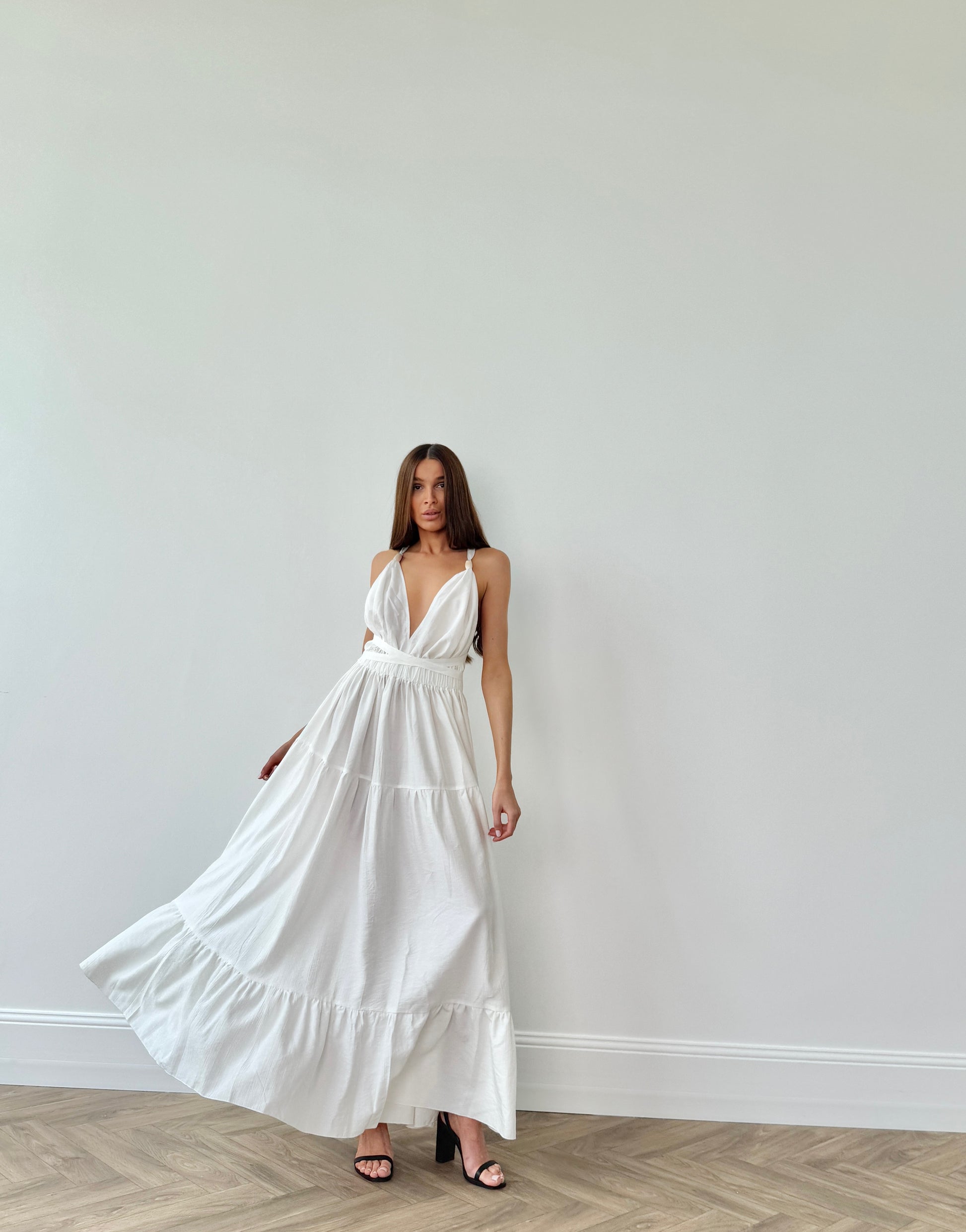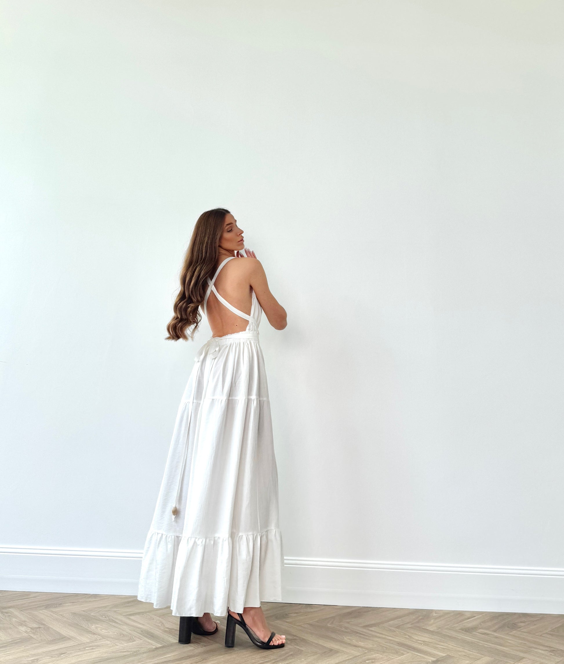 Dress with laces. Waist of the dress has elastic which fits sizes from XS to L. The length of the dress from the waist down is 107cm. The model's hight is 172cm.