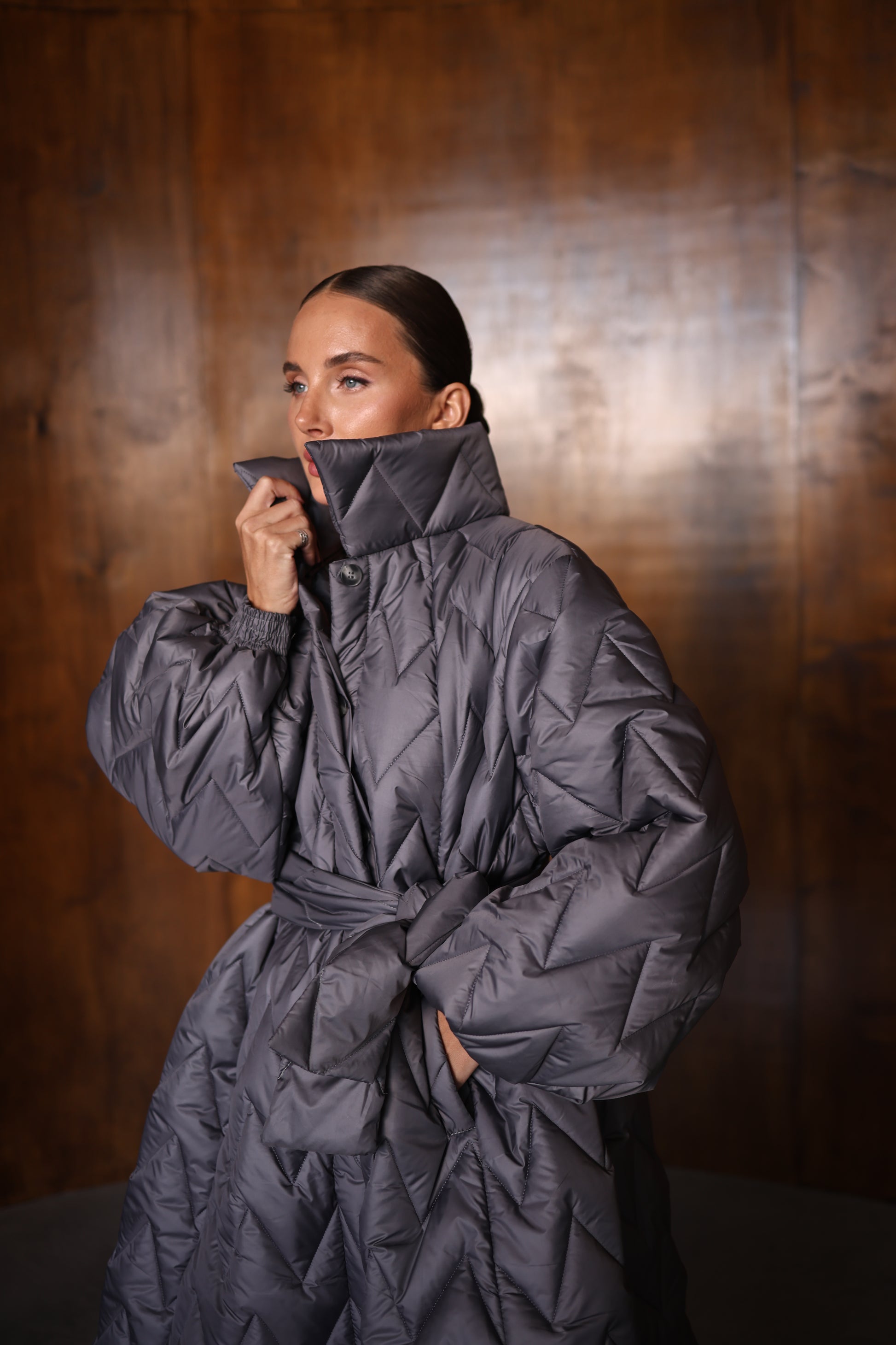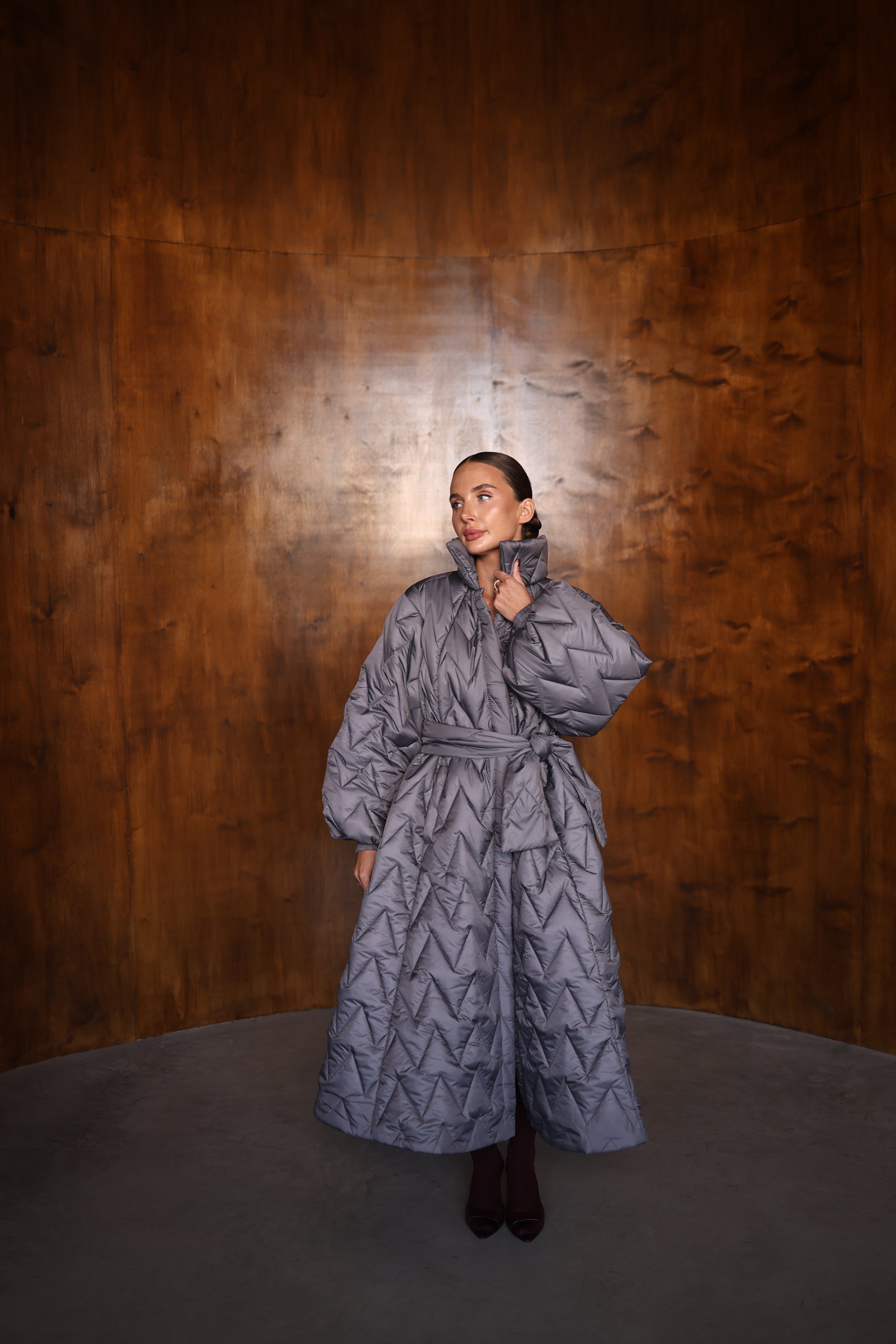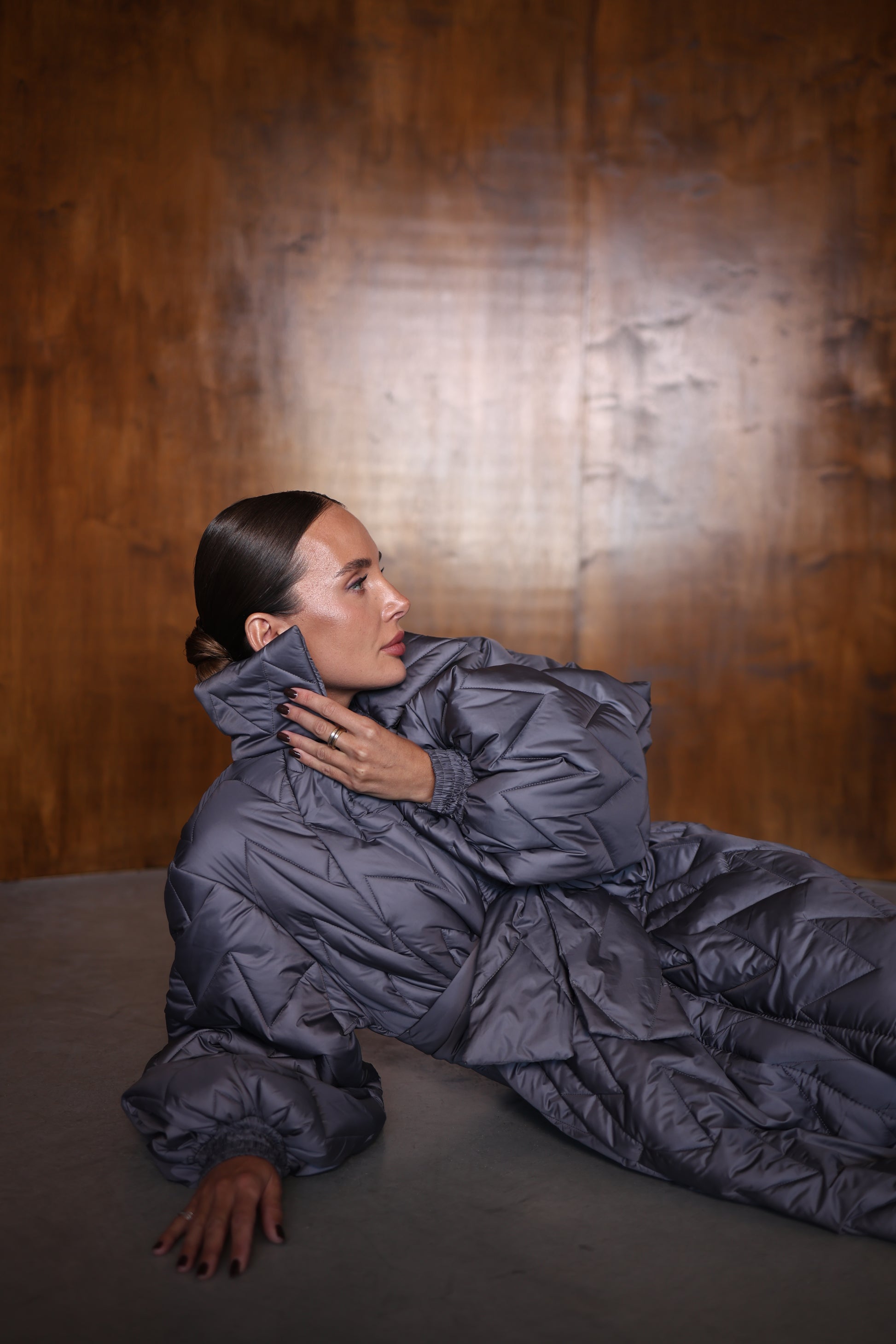 Winter coat - filler is an ecological substitute for goose down. It has an exclusive design, extremely light and very warm. Oversize style (size M/L will also fit XL). Coat length is 120cm. Temperature range is up to -10 degrees. Model is wearing size XS/S, model's height is 166cm.